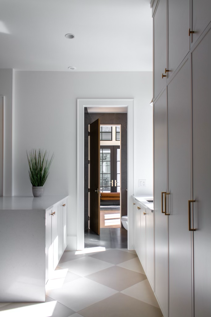 Surface Prep: We start by thoroughly cleaning and leveling the floor, including the potential use of a self-leveling compound based on tile and substrate.